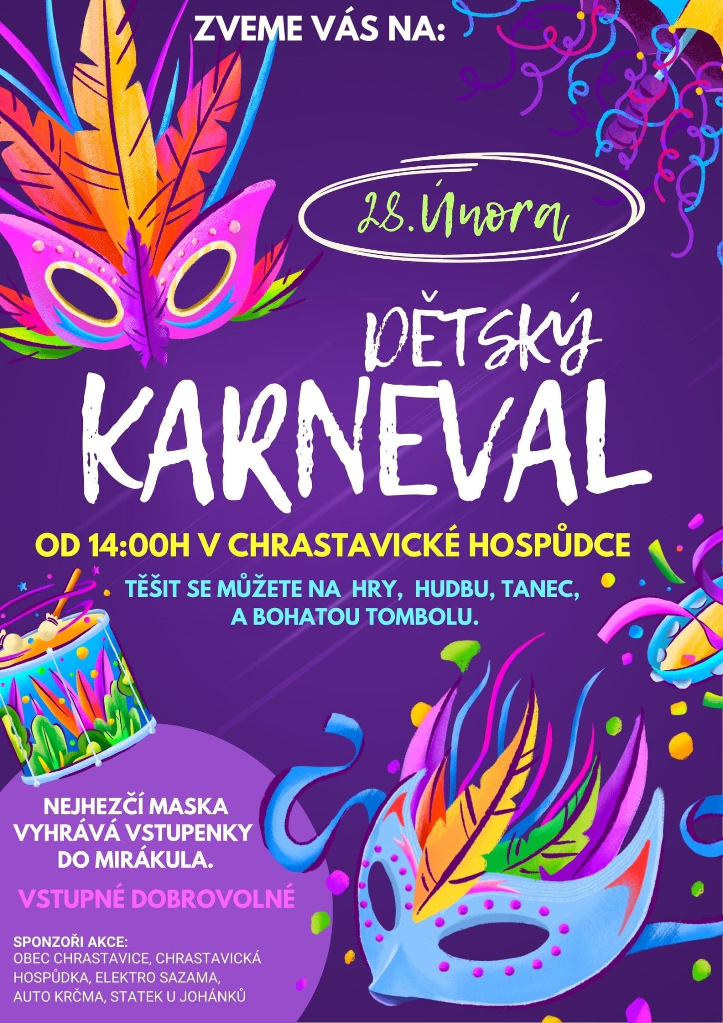ℹ️ Nejhezčí maska vyhrává vstupenky do zábavného parku Mirakulum.