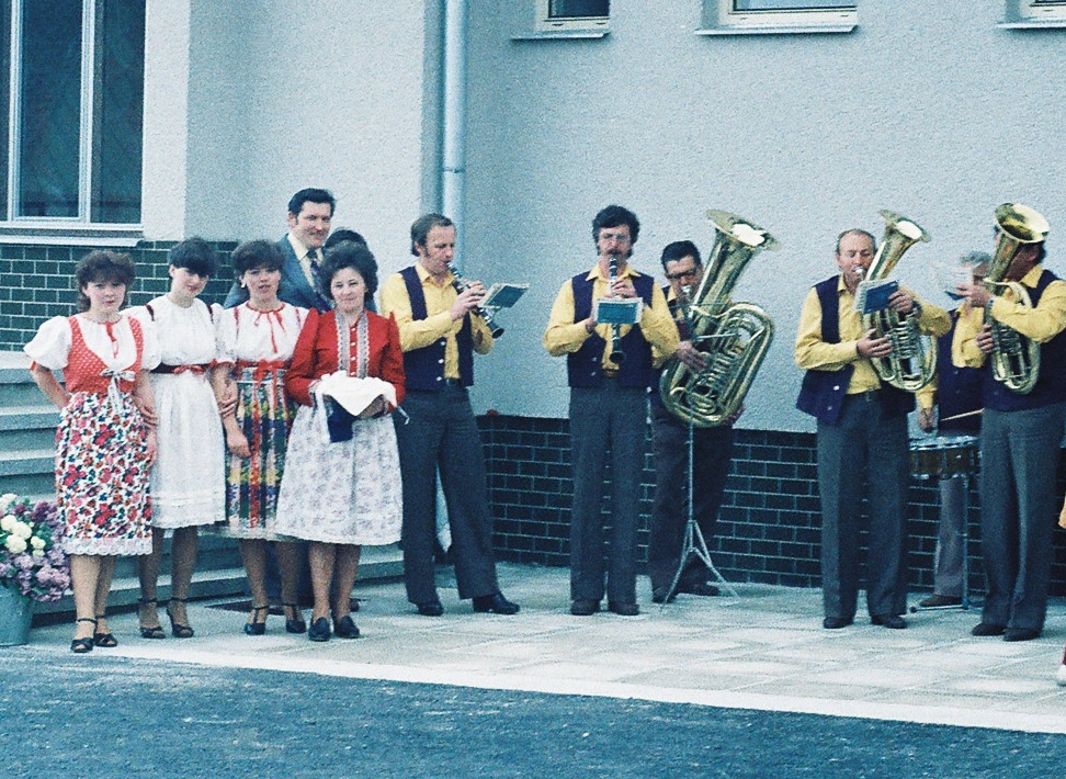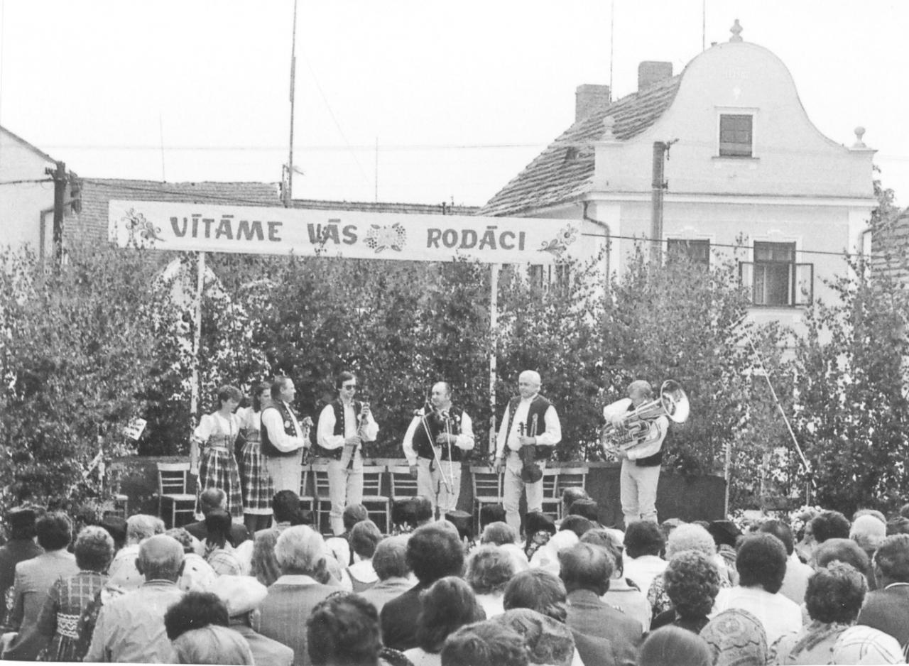 Setkání rodáků v roce 1985. Podium pro účinkující.