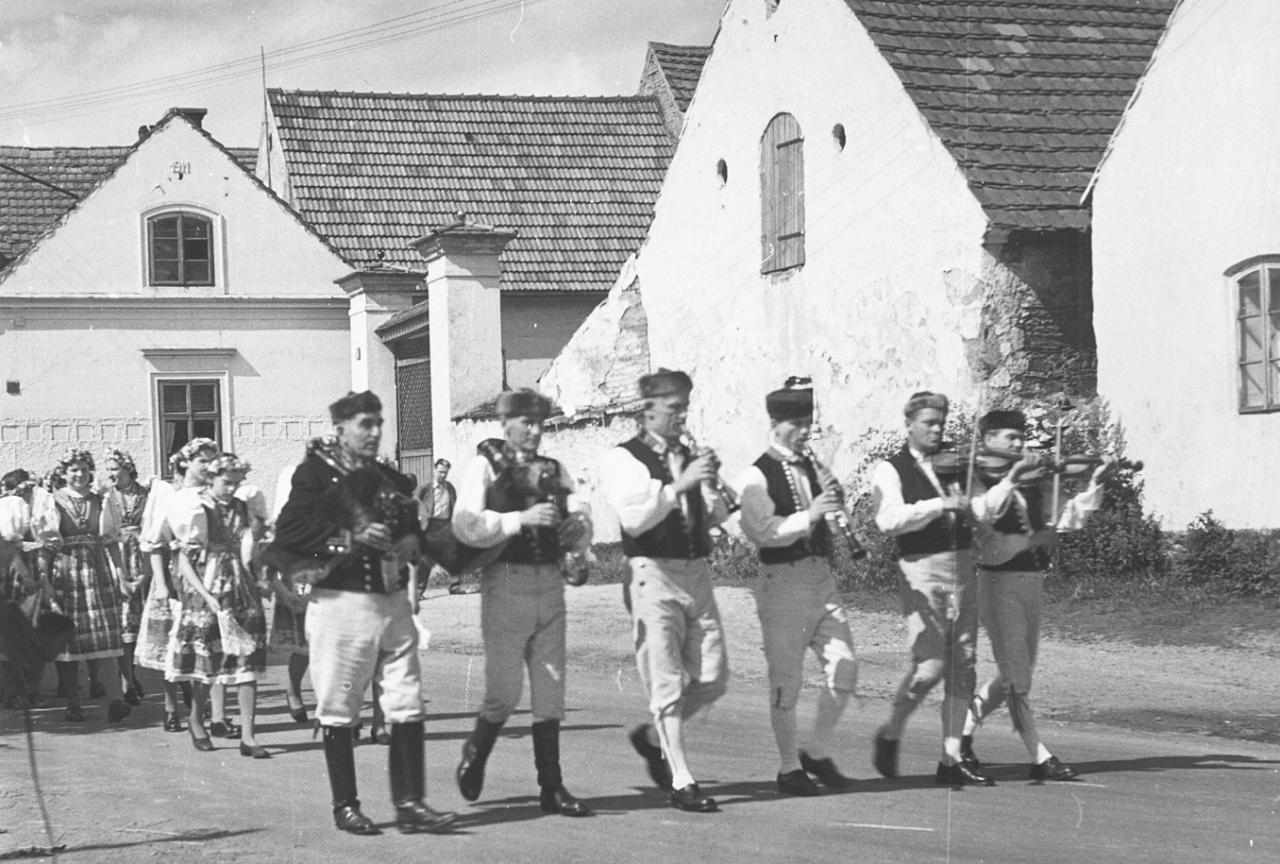 Průvod obcí 19.7. v roce 1959. Chodské odpoledne, které uspořádal Národopisný soubor Chrastavice a Milavče.