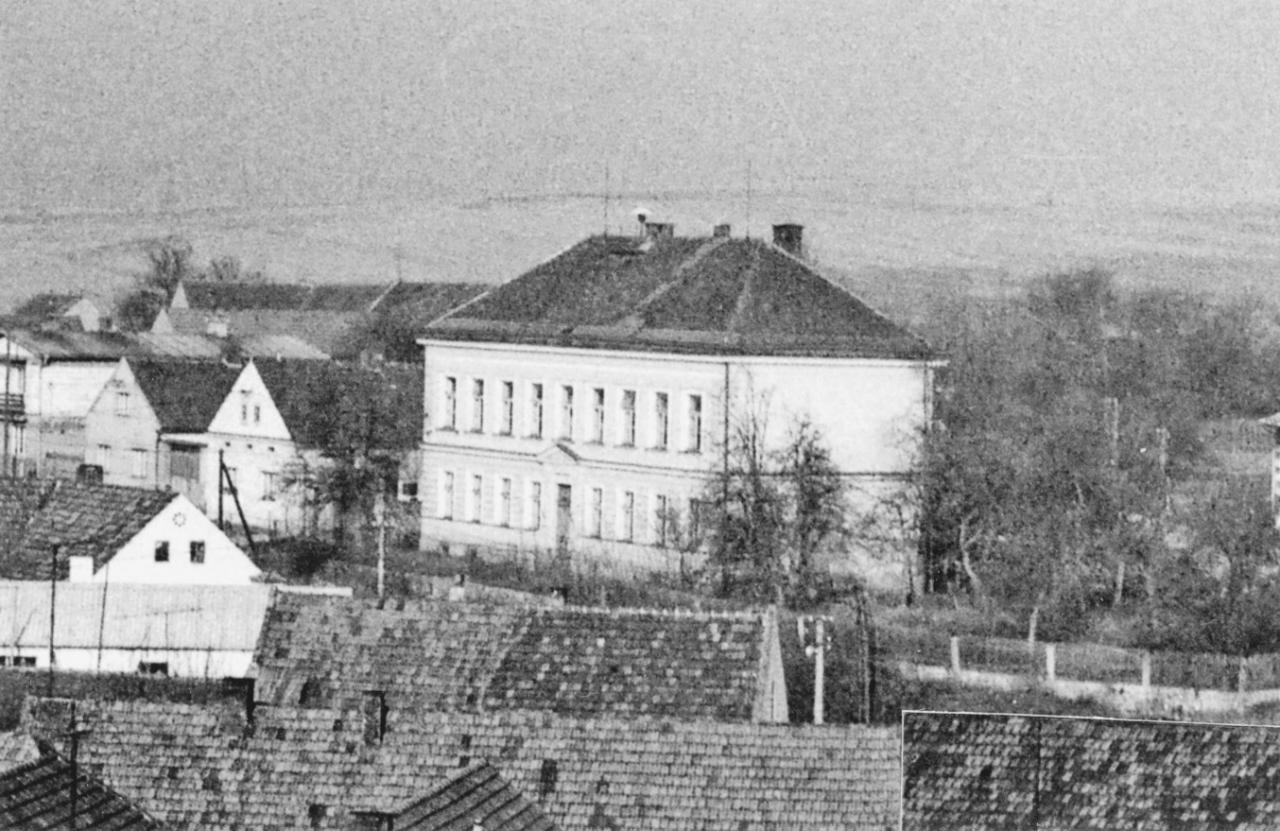 Pohled na školu v době výstavby opěrné zídky v roce 1997.