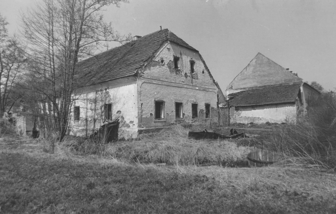 Místní hospodářství č. p. 15 krátce před demolicí. Snímek z roku 1985.