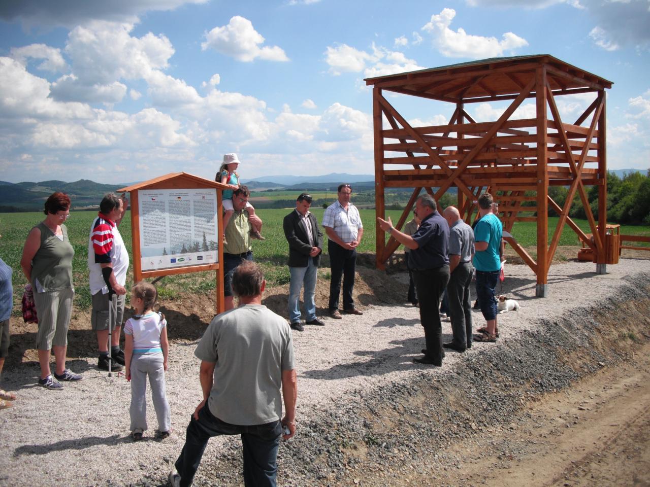 Otevření vyhlídky nad obcí 4. května v roce 2012. Současně se jedná o druhou zastávku naučné stezky k Mohylám na Chrastavickém katastru.