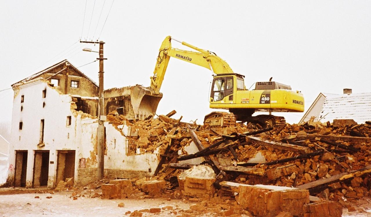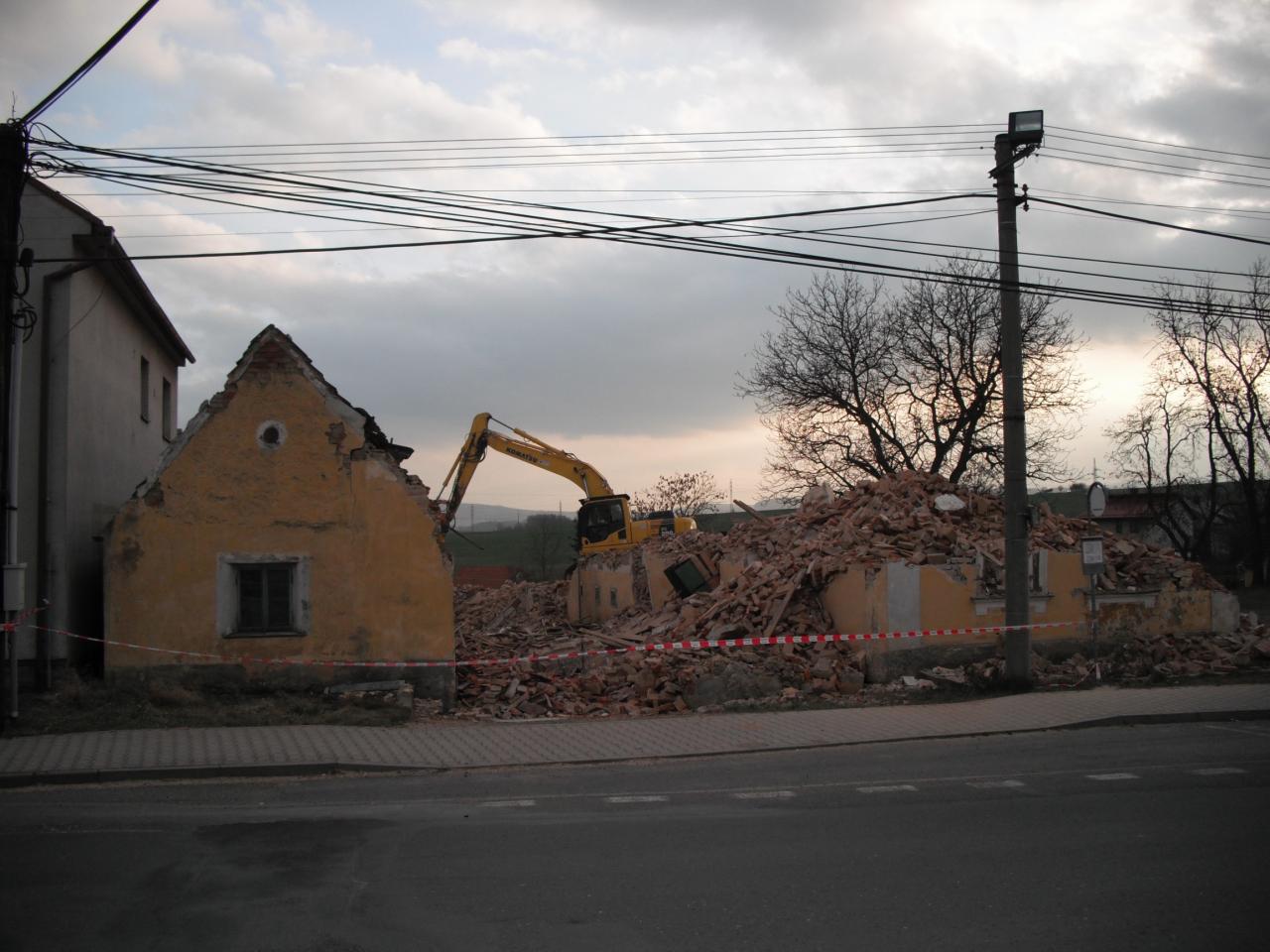 Demolice bývalého statku č. p. 38 U Machů. Demolice probíhala v průběhu března a dubna roku 2014.