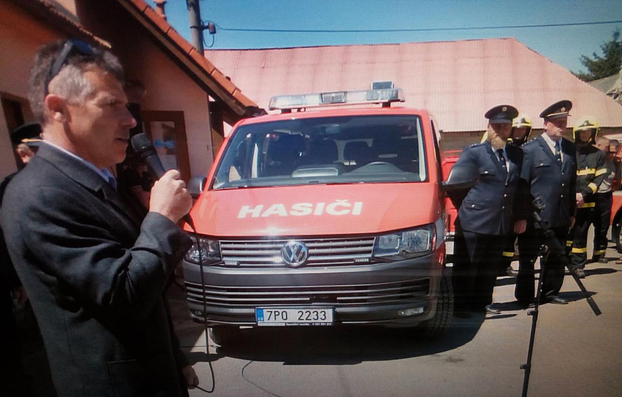 Slavnostní předání dopravního automobilu místním hasičům v roce 2017. Slavnosti se účastnil senátor Jan Látka a poslanec Ing. Vladislav Vilímec.