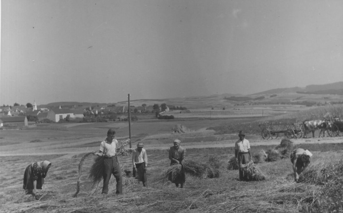 Práce na poli v místech, kde se dnes nachází elektro-rozvodná stanice.